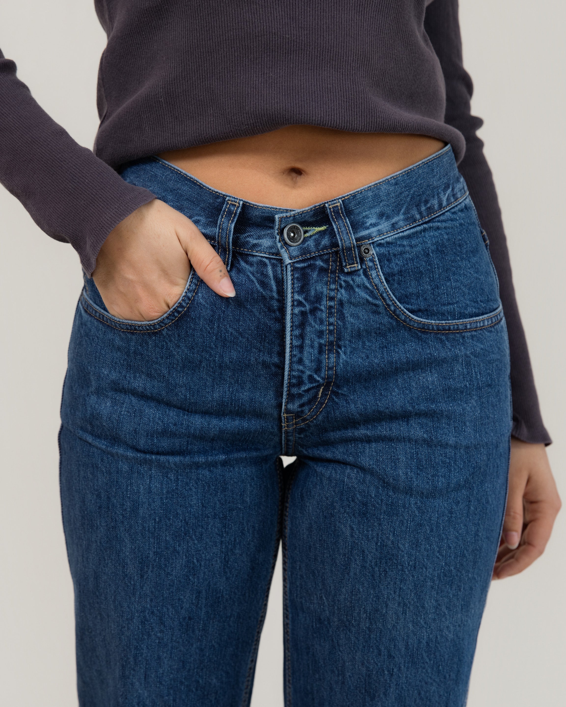 - Our jeans are mid rise styles, so measure jeans that sit below your true waist, usually just below your belly button.